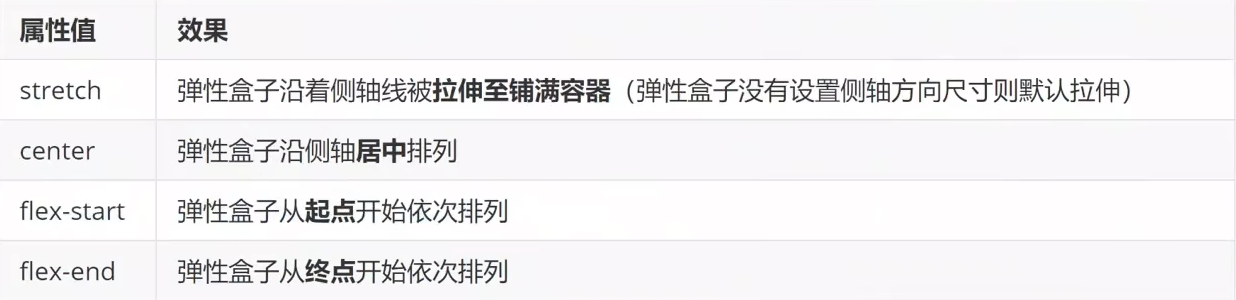1. align-items: 当前弹性容器内所有弹性盒子的侧轴对齐方式(给弹性容器设置)